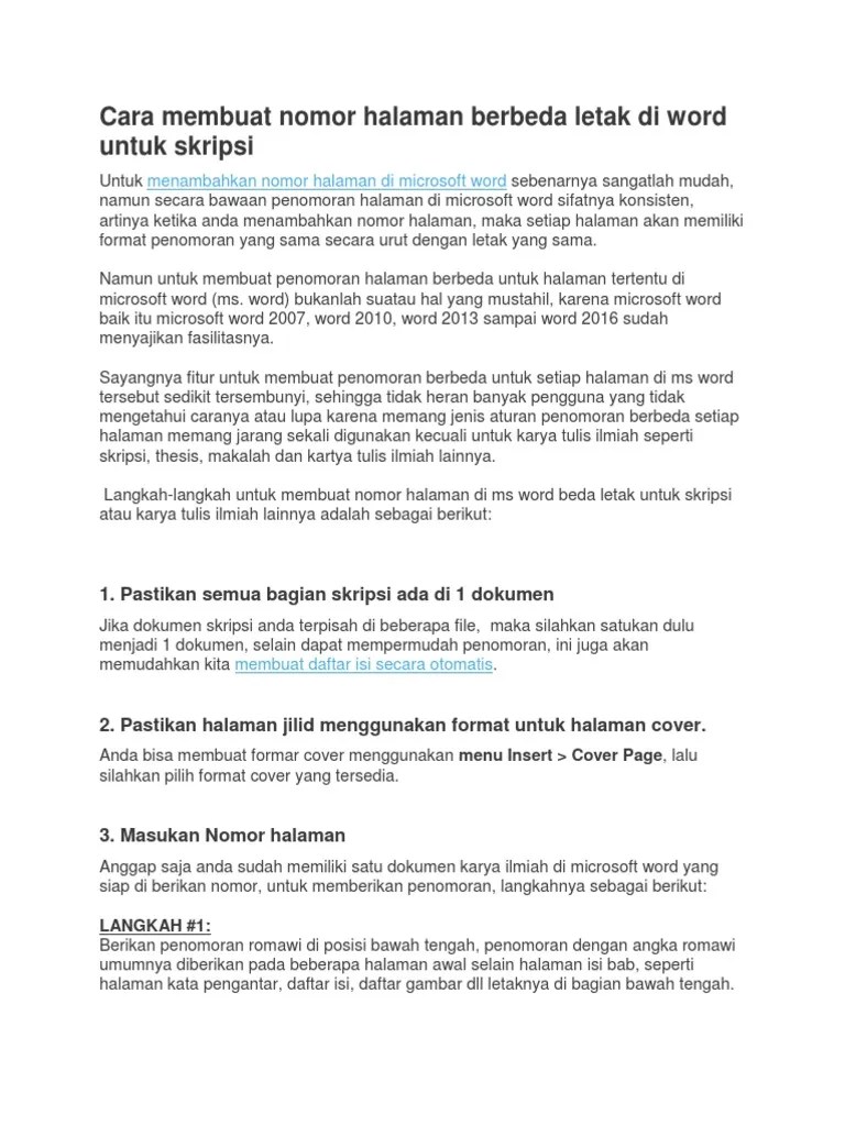 Cara Membuat Halaman Berbeda Di Word 2016 Untuk Skripsi : Cara Membuat Halaman Di Word Campur Romawi Dan Angka Pakar Dokumen - · buka tugas sekolah, makalah, atau skripsi yang hendak diberi nomor .