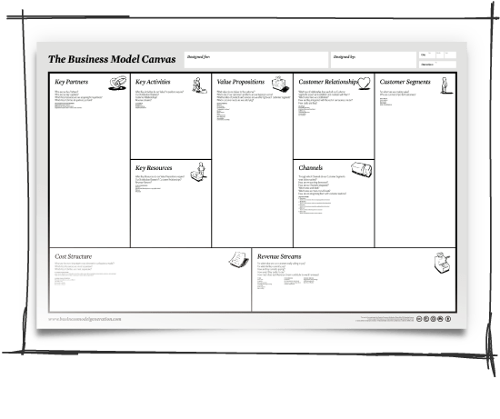 Bisnis model canvas adalah alat representasi visual yang dapat menjelaskan secara komprehensif sebuah proses bisnis.